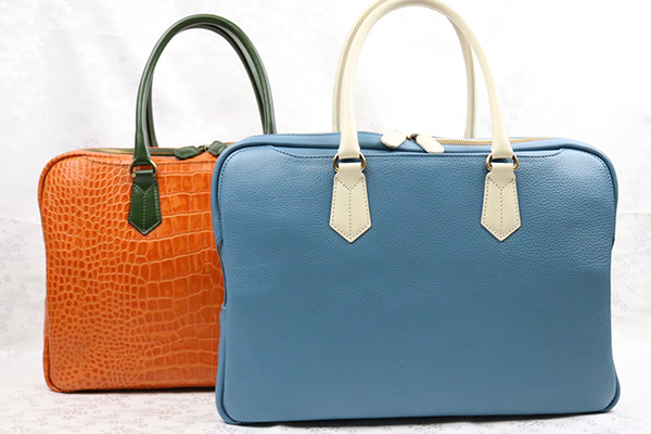 上質なクロコダイル革を使用し、弊社の拘りであるセンター取りを主にバッグ・財布・名刺入れ等、様々な作品を展開しております。牛革では弊社オリジナル作品をベースに、カスタムオーダーにて貴方だけの逸品を演出致します。